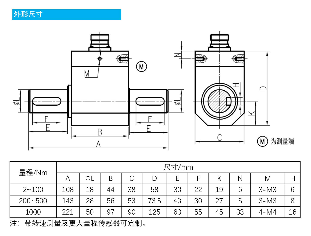 *注:带转速测量及更大量程传感器可定制。